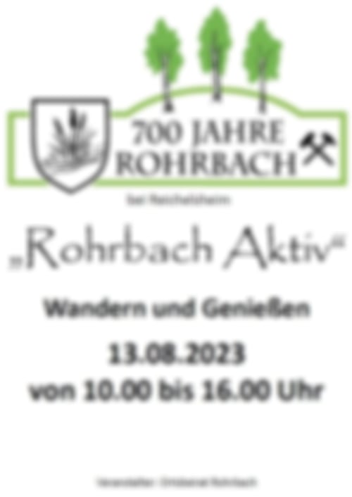 Am 13. August findet wieder „Rohrbach Aktiv“ statt. Es sind wieder viele Vereine vertreten. Neben Essen und Getränke könnt ihr euch auf viele Vorführungen freuen.