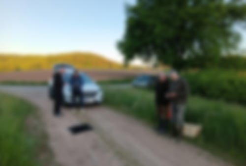 Wir trafen uns heute Morgen um 6 Uhr mit insgesamt 8 Personen bei einem Landwirt im Weiler Bierbach, einem Ortsteil von Brensbach. Mit dabei waren Piloten, Spotter und Läufer.